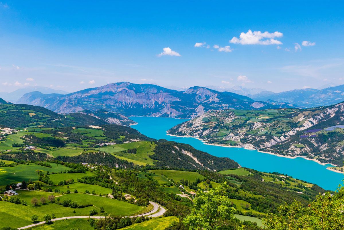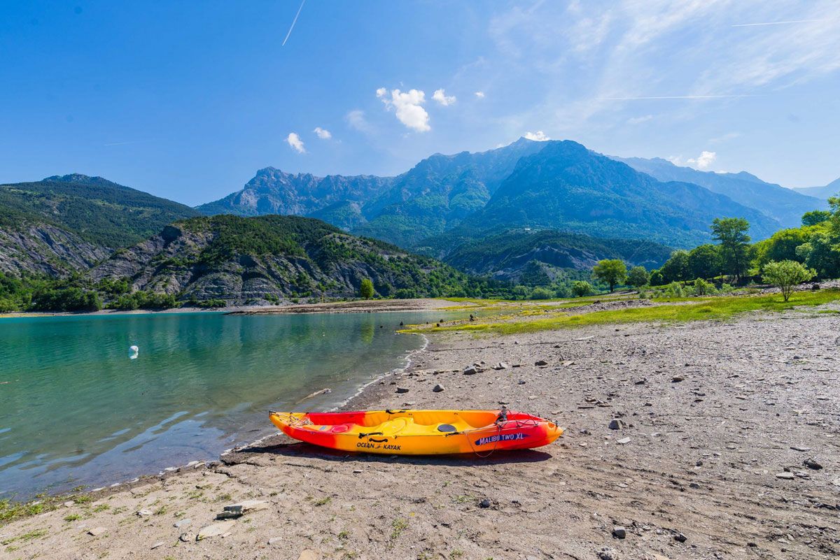 On dirait qu’un bout de Méditerranée s’est posé entre le vert des arbres et le gris des sommets. Cet étonnement est peut-être dû au fait que ce n’est pas un lac naturel.